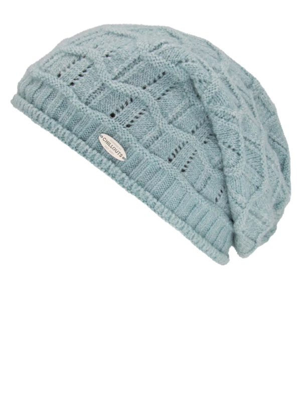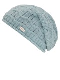 The beanie Maira Washed Blue is knitted and it has an open structure. That is why a fleece lining has been added. This gives the chemo hats a comfortable and warm feeling. The volume of the hat is at the back of your head. Suitable for autumn and winter days.